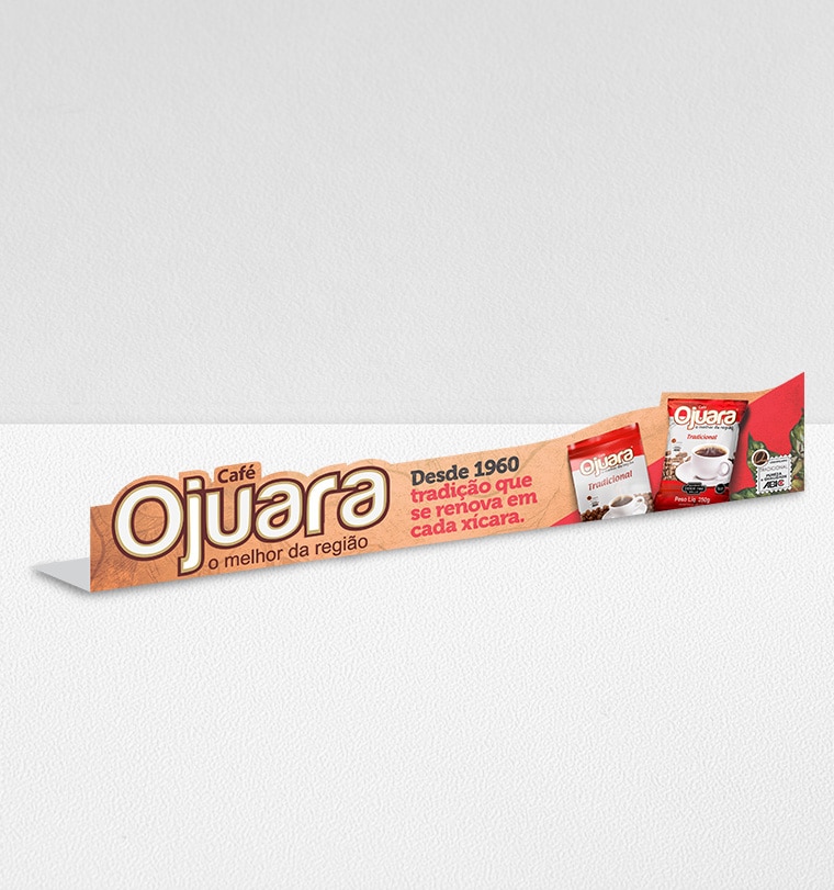 Além da função de aparar os itens com firmeza e estabilidade, pode ser personalizada com impressão, transformando-se em um recurso de comunicação visual que valoriza a marca diretamente no momento da compra.